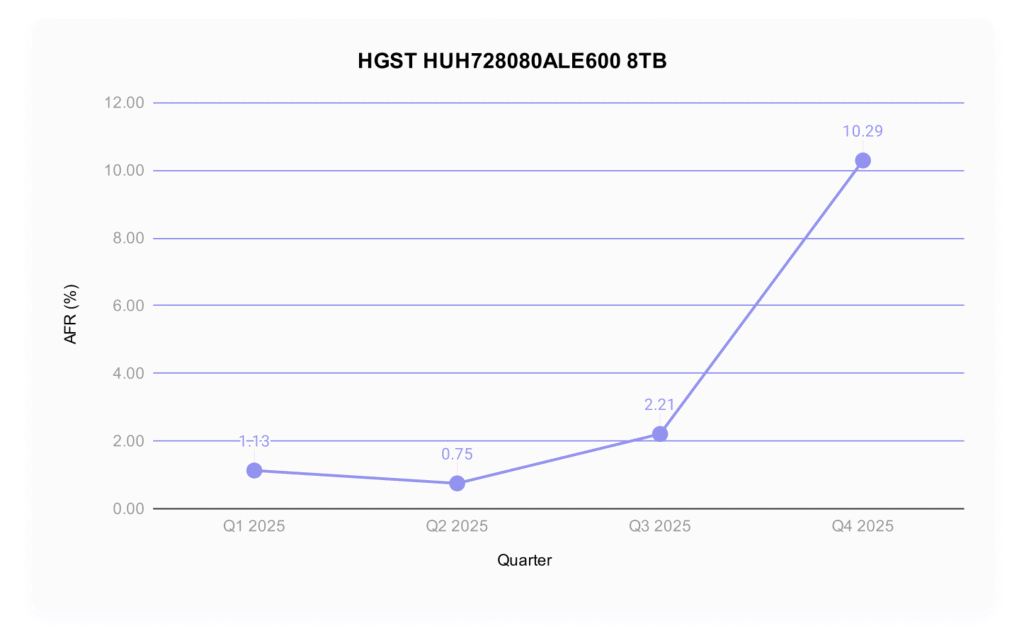 - HGST HUH728080ALE600 8TB: 10.29%
