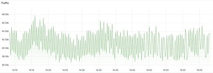 Прошлой ночью сеть tornadoidc POP была модернизирована. 2x 1,2 Тбит/с на разнородном темном оптоволокне, 2,4 Тбит/с в целом — приличный запас мощности, уже пропускает более 400 Гбит/с общего трафика