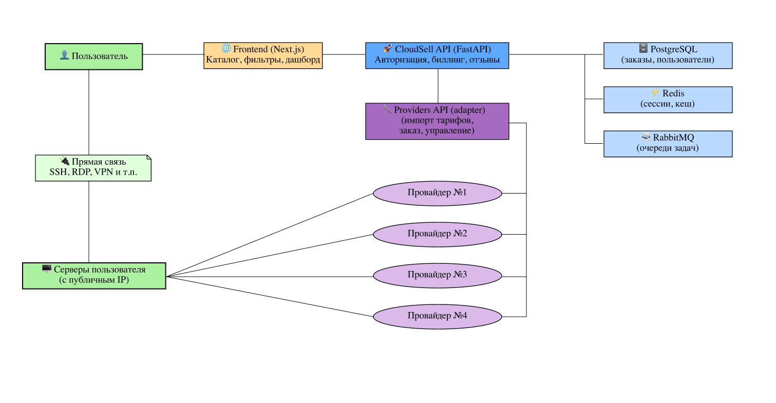 Конечно, кто-то может возмутиться: «Есть же сервисы сравнения тарифов, да и скидки дают!» Но готовые решения не закрывали главную проблему. В них не было централизованного биллинга: даже если данные собирались, арендовать всё равно приходилось у каждого провайдера отдельно. Да и интерфейсы там устаревшие, данные не всегда актуальны, а реальные тарифы приходилось перепроверять вручную.