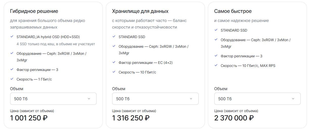 Новое решение предлагает бизнесу альтернативу публичным облачным хранилищам, устраняя ключевые риски мультитенантных сред. Каждая компания получает физически изолированную инфраструктуру с собственной системой хранения на базе технологии Ceph с соблюдением требований безопасности. Решение доступно для размещения как в дата-центрах Рег.облака, так и на площадках заказчика.