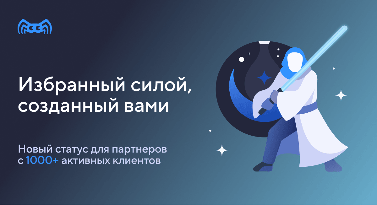 Один из наших партнеров пересек черту в 1000+ активных клиентов и открыл секретный статус. Это важный рубеж, и мы предложили ему самому выбрать название статуса.