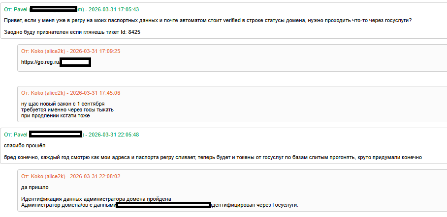 А так, конечно, интересна ещё судьба российских доменов крупных иностранных корпораций. У них у всех поголовно домены зарегистрированы на материнские юрлица, вериф через Госуслуги они не пройдут.