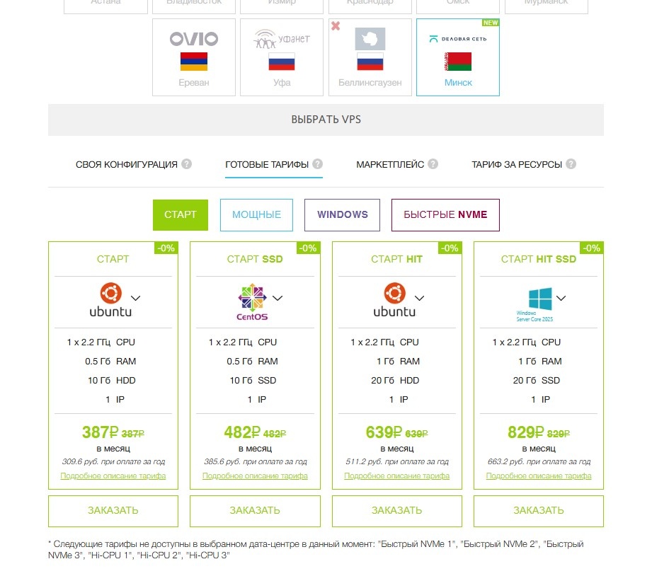 Реальную доступность тарифов можно увидеть только в ЛК, на странице заказа: ruvds.com/ru-rub/my/orders