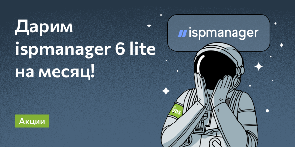 При аренде нового сервера на панель управления ispmanager 6 lite в первый месяц будет действовать скидка 100%. В акции участвуют почти все тарифы — как готовые, так и гибкие конфигурации. За исключением VDS ARM, VDS Storage и серверов для Windows.