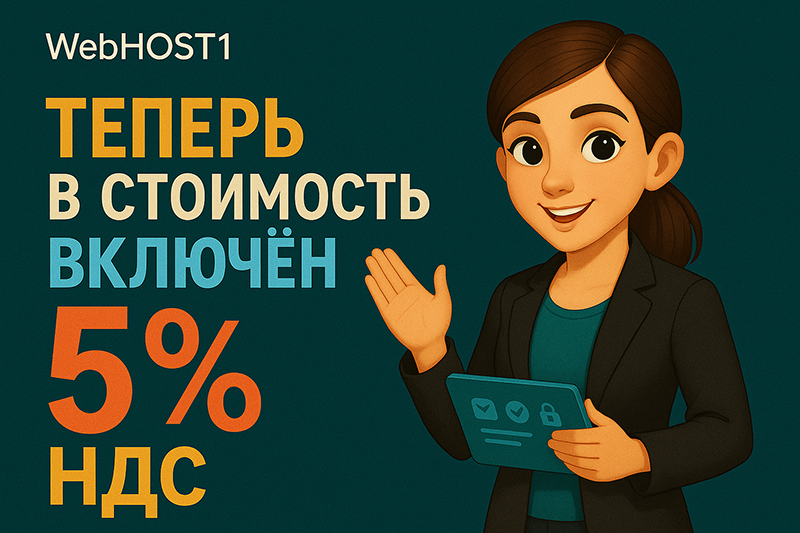 С 1 декабря 2025 года стоимость услуг WebHOST1 увеличится на 5%. Кроме того, наша компания переходит на уплату НДС 5% согласно действующему законодательству. Все счета-фактуры с НДС будут формироваться в установленном порядке.