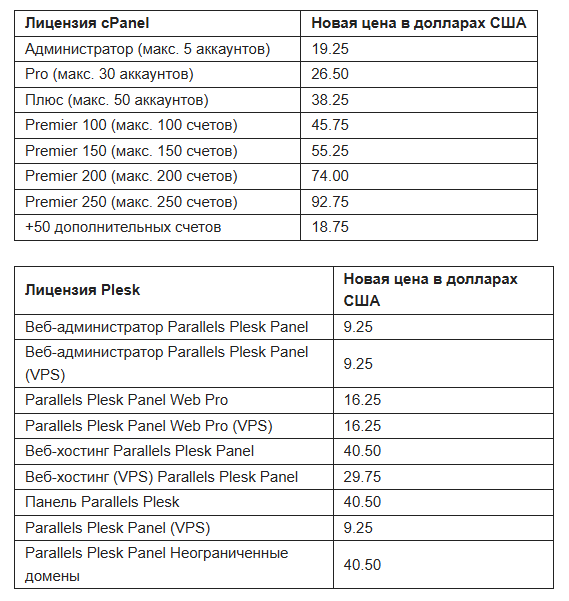 Как вы, возможно, читали в различных новостных лентах отрасли, cPanel, Plesk и Microsoft объявили о повышении своих цен с 1 января 2025 года. Мы перенесем это повышение лицензий на сборы за услуги. Поэтому, только если вы используете лицензии cPanel, Plesk или Microsoft, следующие новые ставки вступят в силу с 1 января 2025 года