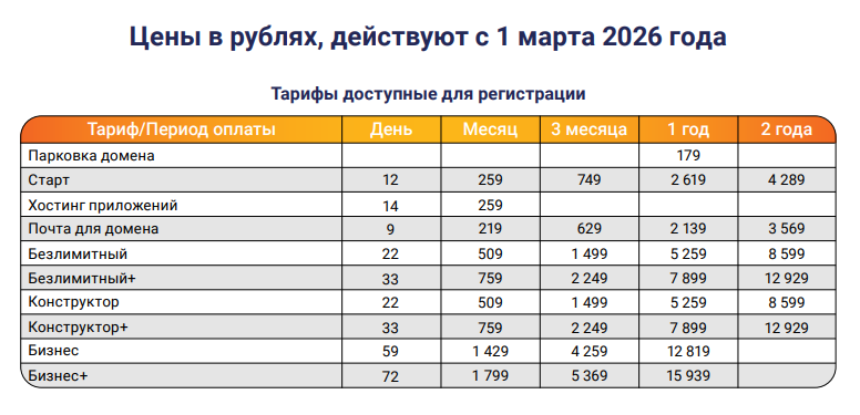 Обновлённые цены на тарифы можно найти в документе. Обращаем ваше внимание, что помимо ценовых изменений, с 1 марта 2026 года также вступят в силу обновления в правилах использования услуг — Приложение № 3 к Публичной оферте.
