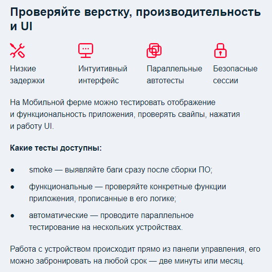 Ферма мобильных устройств — новый сервис Selectel для тестирования приложений. Мы собрали более 100 девайсов разных производителей и моделей. Можете выбрать один смартфон или арендовать сразу несколько.