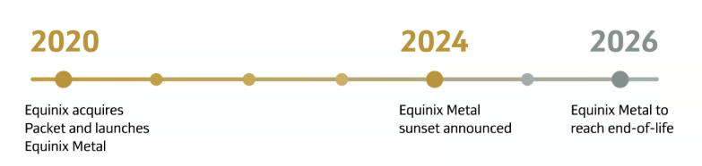 Поддержка Equinix Metal прекращается 30 июня 2026 года, в результате чего у существующих клиентов останется около 18 месяцев после первоначального объявления об окончании поддержки.